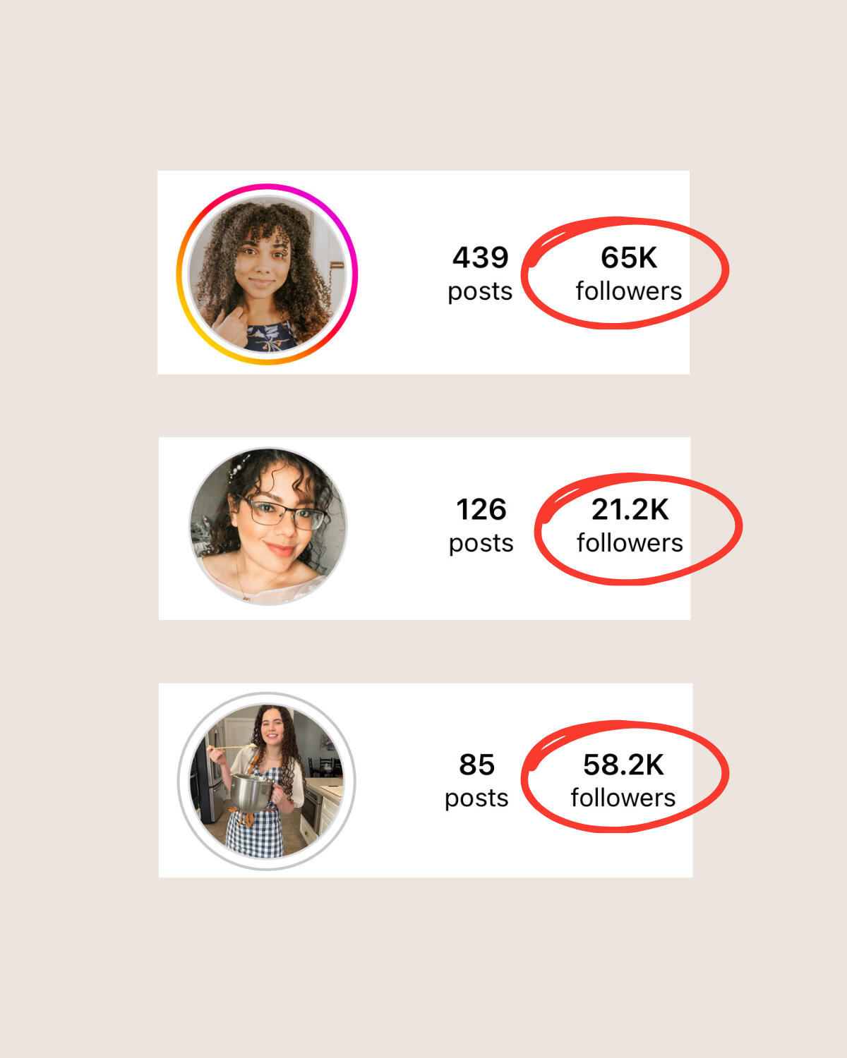 A wife and mom of three young ones (who take a TON of attention), AND is a full-time homemaker.- her platform is 1% in engagement rate